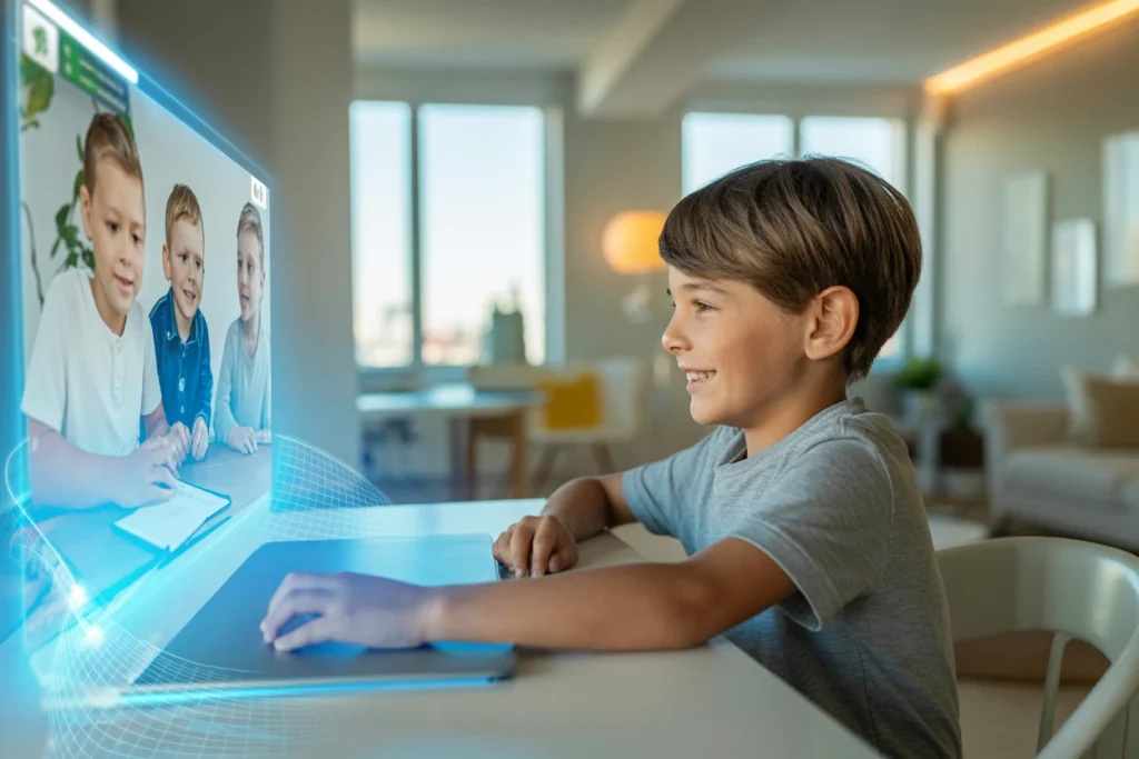 - Відеоуроки та асинхрон: Уроки проходять наживо (синхронно), але кожен з них записується. Якщо дитина пропустила заняття або хоче повторити складну тему, вона завжди може переглянути запис (асинхронне навчання). Така гнучкість є безцінною для родин, що живуть у різних часових поясах, а також для дітей, які професійно займаються спортом чи мистецтвом і потребують індивідуального графіка. Це дозволяє уникнути “перегріву” від екранного часу і навчатися у власному темпі.