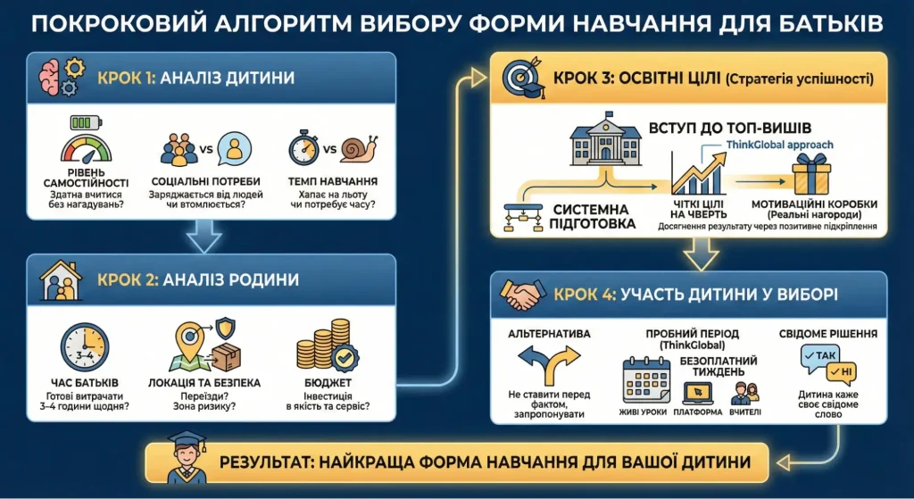 Не существует идеальной школы «для всех». Есть только форма обучения, которая подходит именно вашему ребенку и вашей семье в конкретный момент времени. Кому-то необходима строгая дисциплина очного класса, а кто-то раскрывается в спокойной домашней атмосфере, где можно сосредоточиться на математике и английском языке, не отвлекаясь на общий шум в классе.